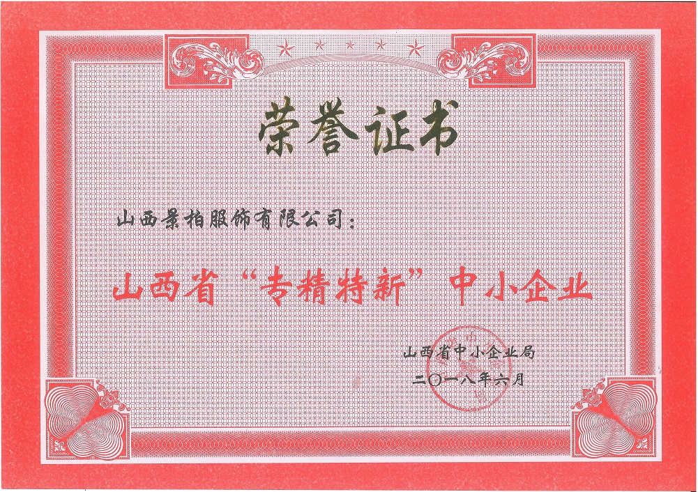 2018年,榮獲山西省”專(zhuān)精特新“中小企業(yè)