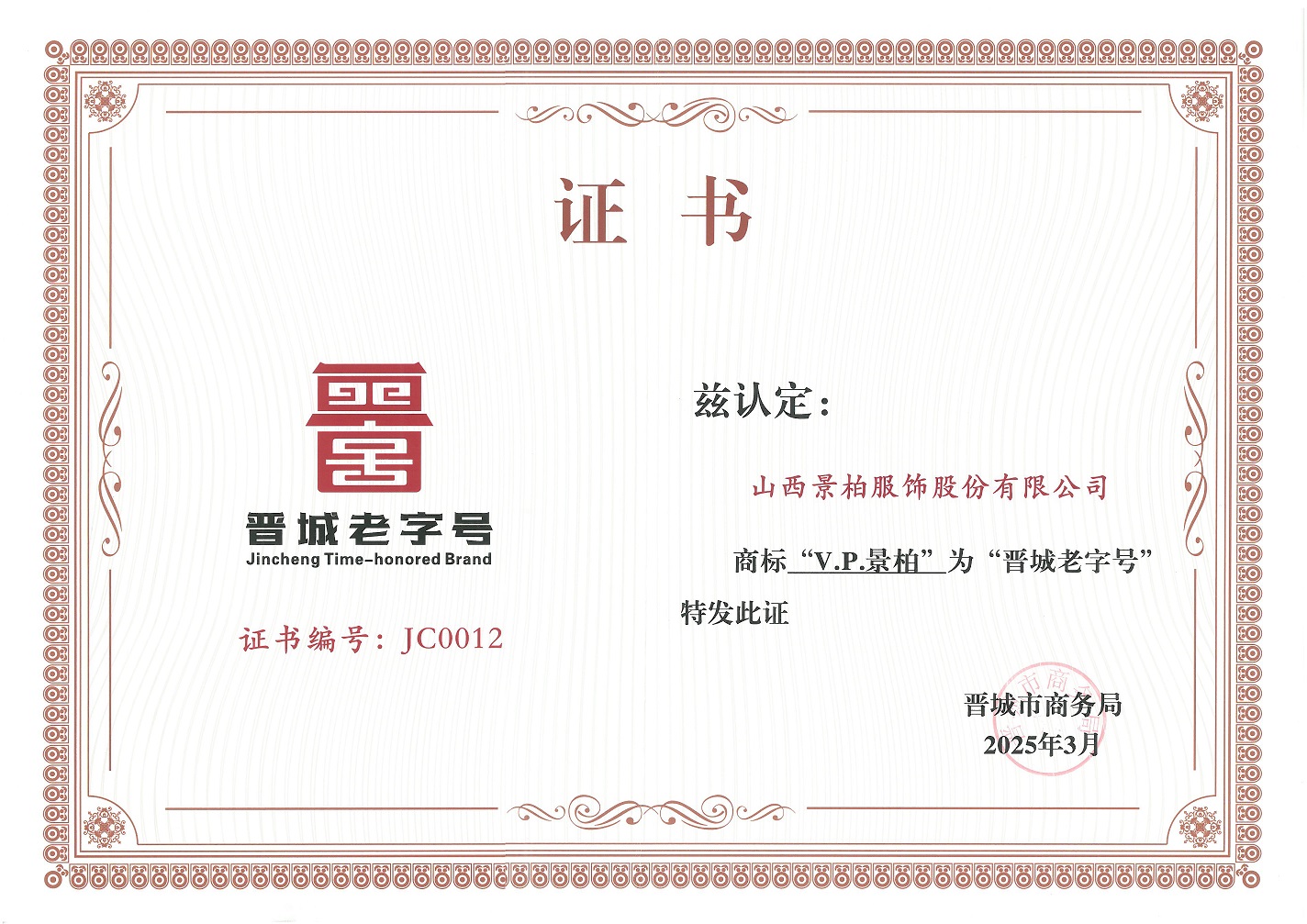 2024年,榮獲“晉城老字號(hào)”稱(chēng)號(hào)。